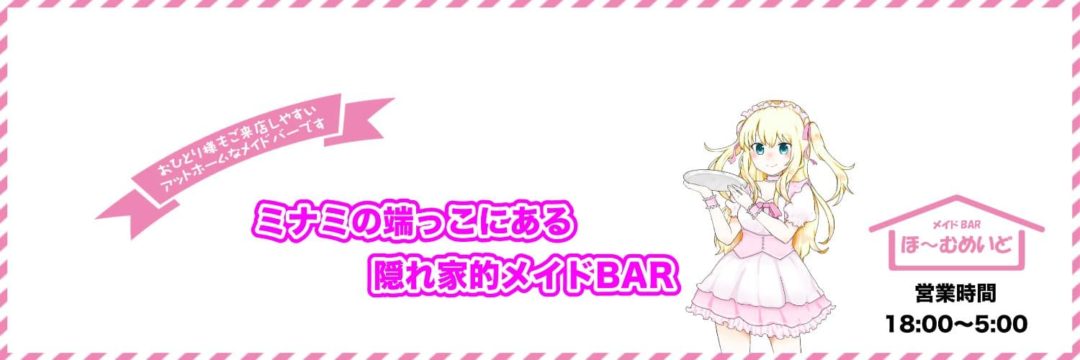 大阪・日本橋のコンカフェ、「メイドBAR ほ〜むめいど」をレビュー。落ち着いたレンガ調の内装と、黒を基調にしたメイド衣装が魅力の小さなBAR。飲み放題システムやカラオケも完備し、アットホームな接客が楽しめます。おひとり様も大歓迎で、深夜まで営業中。今夜は静かにメイドとお酒を楽しんでみませんか?エリア:日本橋コンセプト:メイドこだわり条件:Wi-Fiお酒カード払いソフトドリンク予約喫煙可団体利用貸切飲み放題