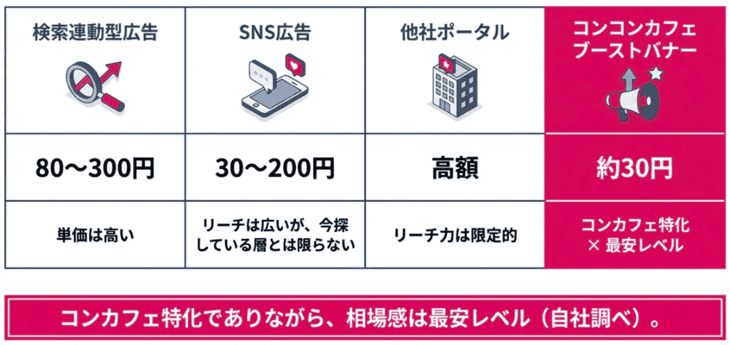 コンコンカフェブーストバナーの強み